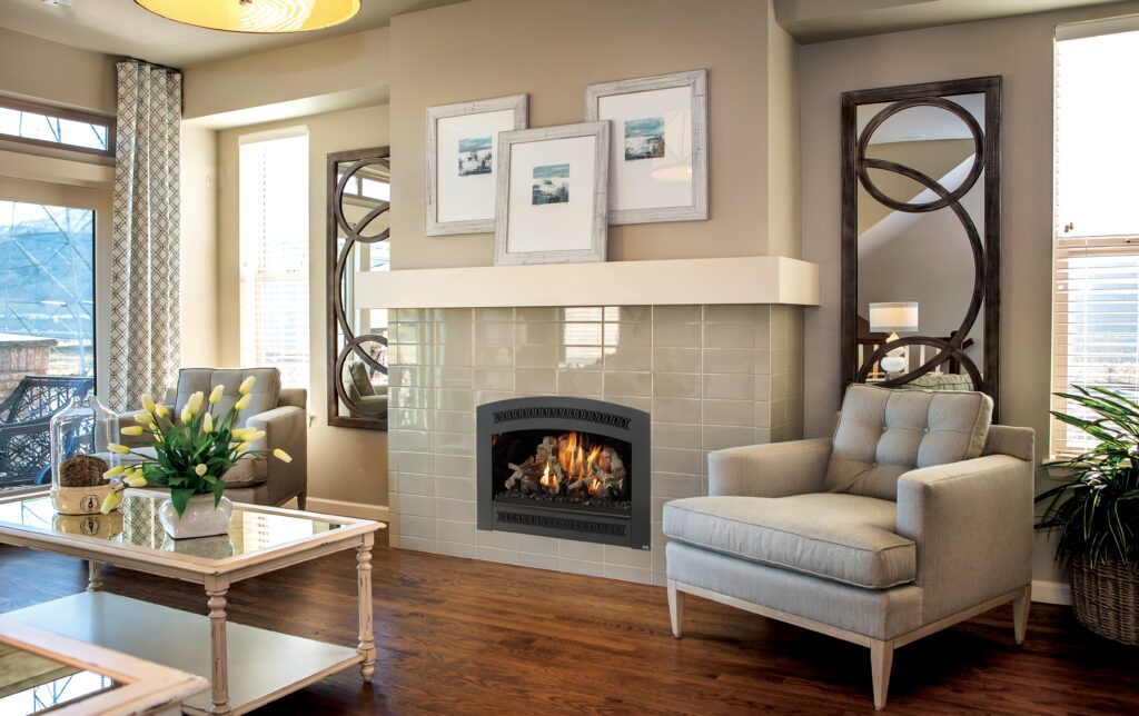 The 564 Collection offers four mid-sized fireplace models, each with 564 square inches of glass and 25,000–35,000 BTUs of efficient heat. Choose from Classic Oak or Birch Log Sets, enjoy Accent Lighting and Ember-Glo ember bed illumination, and add the optional CoolSmart TV Wall for TV-safe installation.