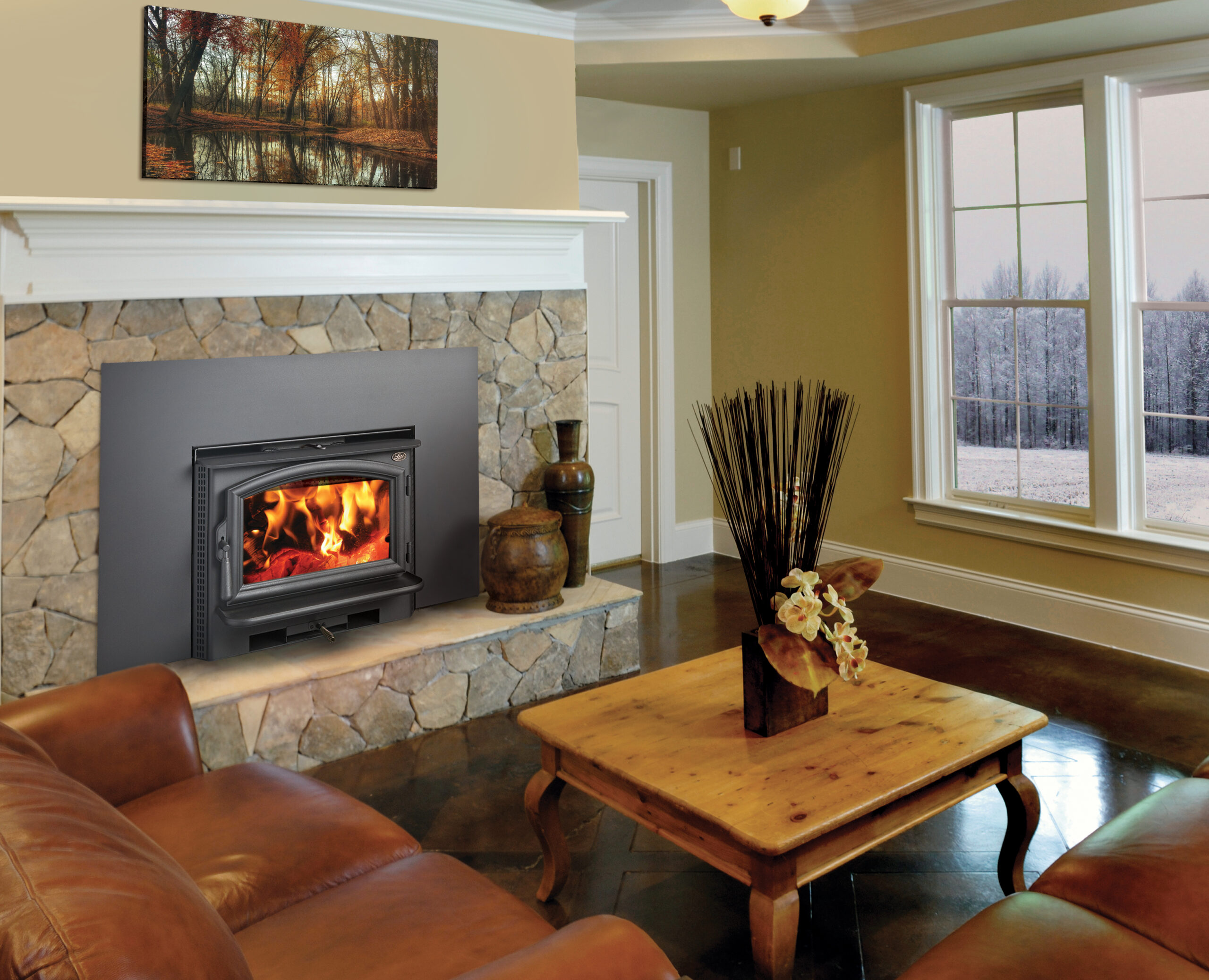 Wood burning inserts installed into existing fireplaces provide greater heating and efficiency capabilities. Rather than losing valuable heat up a chimney, inserts convert an existing masonry fireplace into a heat-producing appliance by using the existing chimney through a flue liner or other necessary modification and most have blowers to circulate the heat. Inserts can make non-efficient wood burning fireplaces more efficient, yet still maintain the original appearance of the fireplace. Sized to fit the existing fireplace, there are a number of different styles to select.